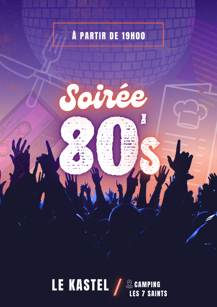 Ne manquez pas le rendez-vous incontournable du restaurant du camping; le Kastel ! Chaque premier vendredi du mois, plongez dans l’univers des années 80. DJ set, et piste de danse en folie : c’est le moment de réviser vos classiques !
